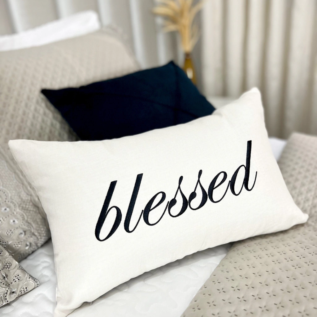 Além de embelezar o ambiente, a capa de almofada em linho bordado 'Blessed' também traz um significado profundo. Perfeita para presentear alguém especial ou até mesmo para si mesmo, ela é uma lembrança constante de gratidão e positividade.