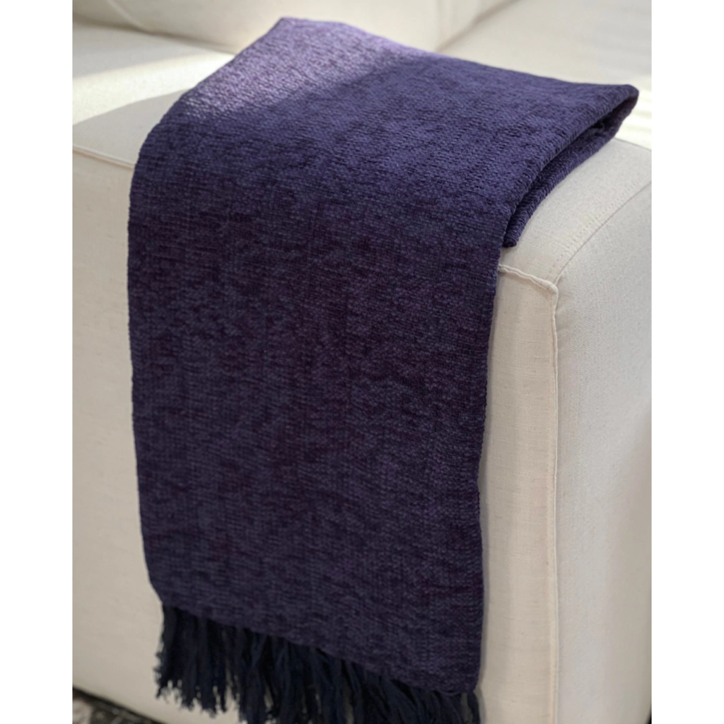 A manta em chenille é conhecida pelo toque macio e aveludado que possui, a trama é bem fechada. A textura macia e firme, proporciona beleza e sofisticação à decoração