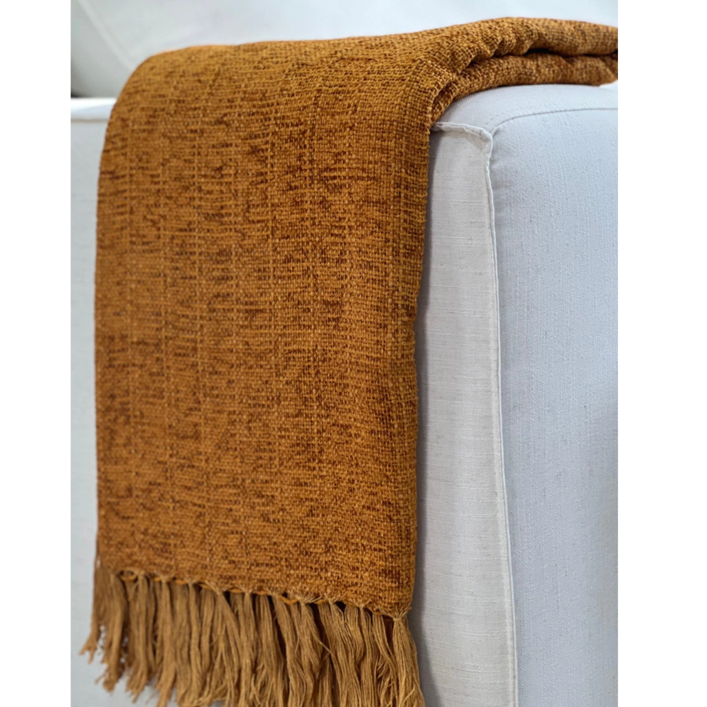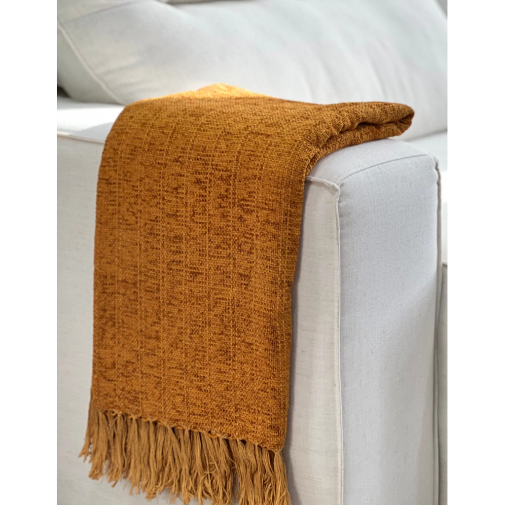 A manta em chenille é conhecida pelo toque macio e aveludado que possui, a trama é bem fechada. A textura macia e firme, proporciona beleza e sofisticação à decoração