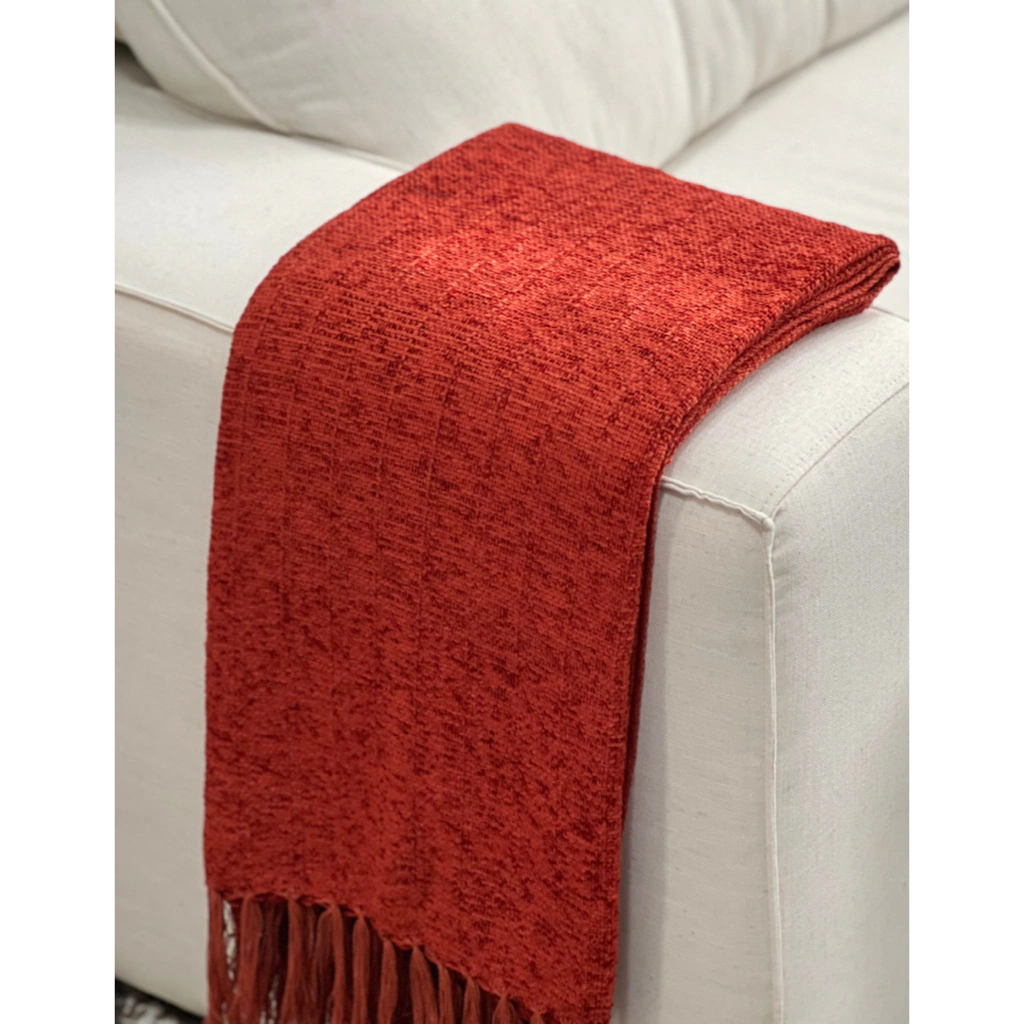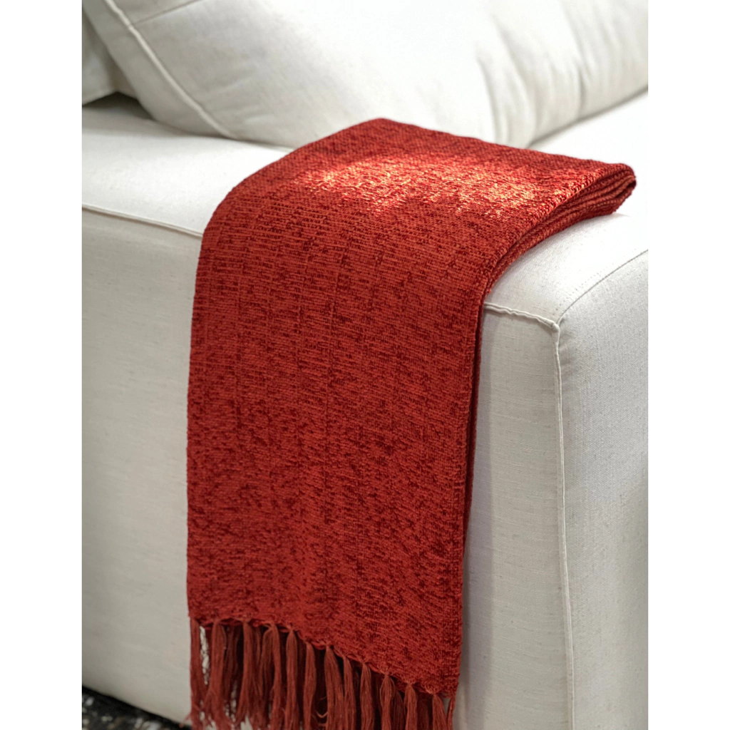 A manta em chenille é conhecida pelo toque macio e aveludado que possui, a trama é bem fechada. A textura macia e firme, proporciona beleza e sofisticação à decoração